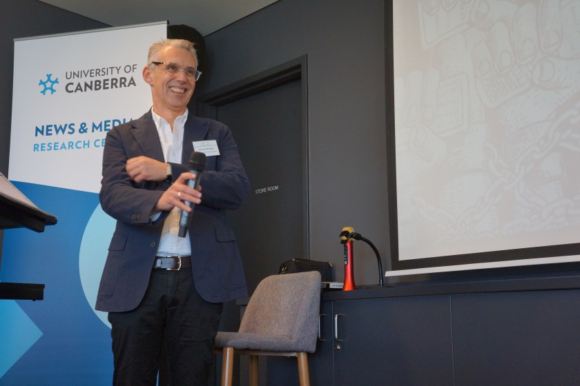 Richard Denniss kicked off the event at a dinner the night before with a talk that asked us to think about why we should think about alternative ways to pay for news.