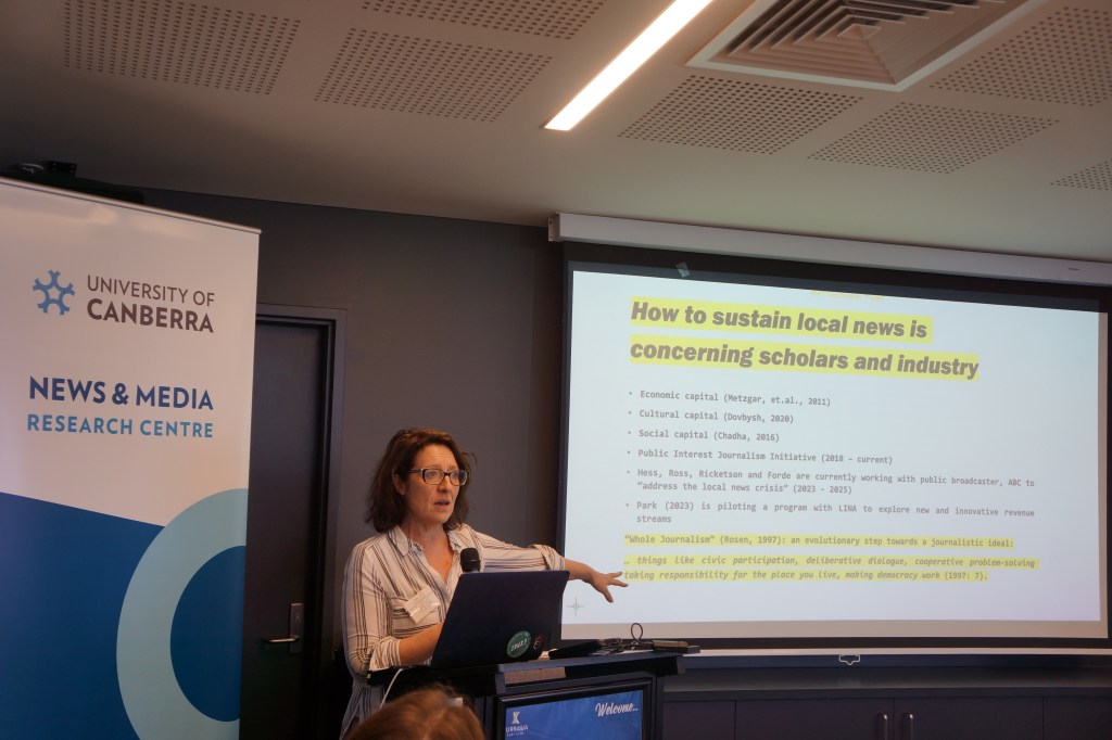 Keynotes on the day included Professor Kristy Hess, who presented us with five provocative ideas about local news, and Phil Napoli whose presentation gave insight into the funding gap for local news in the US.